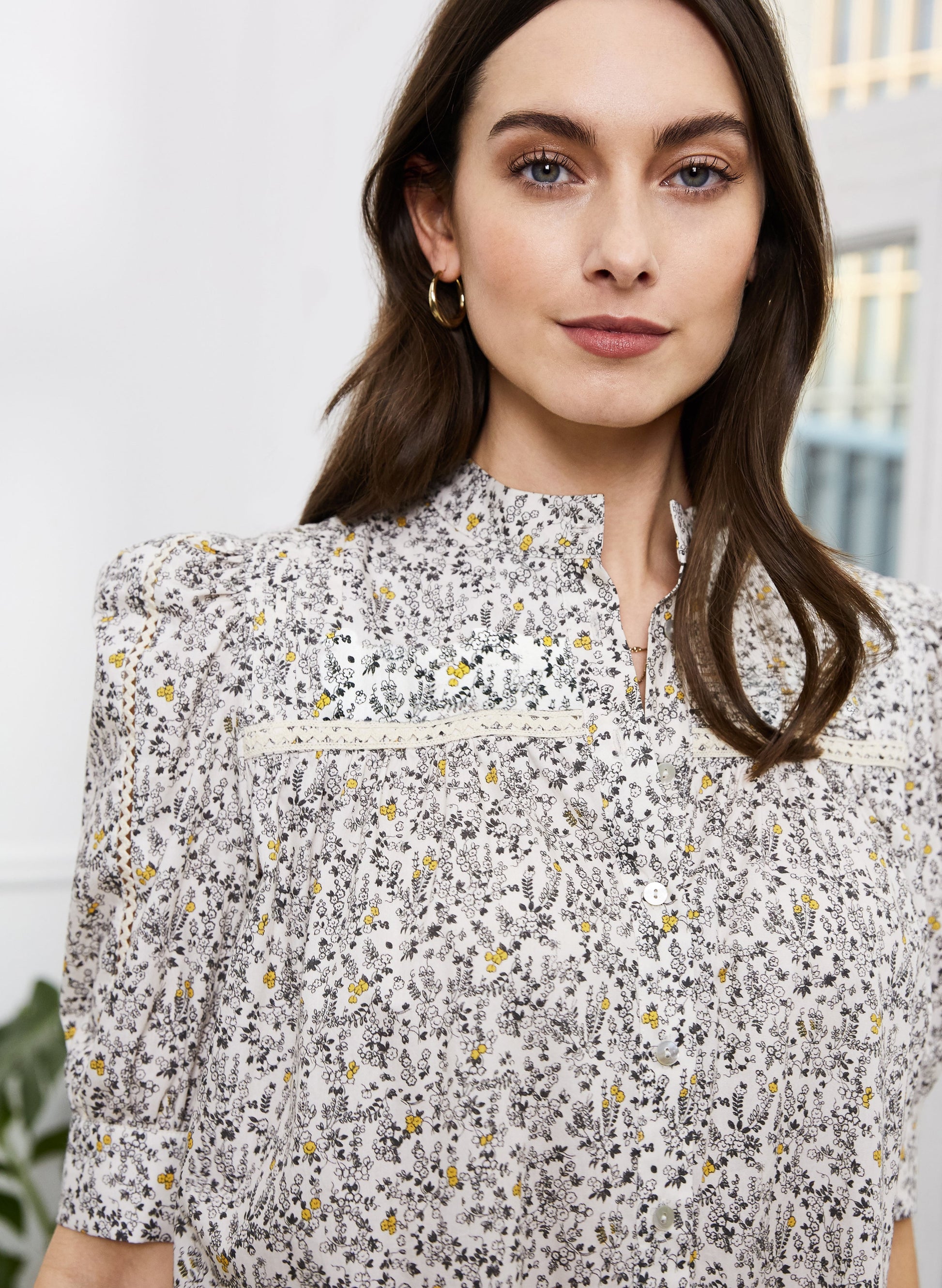 A button-through shirt dress with a folky feel, Adaora boasts all the vintage-inspired details we love, like cotton lace inserts running across the chest and sleeves and a tiered skirt. Crafted from organic cotton and featuring a yellow hand drawn floral print, it’s a versatile style to see you through spring with ankle boots and jackets, and into summer with your favourite sandals.
