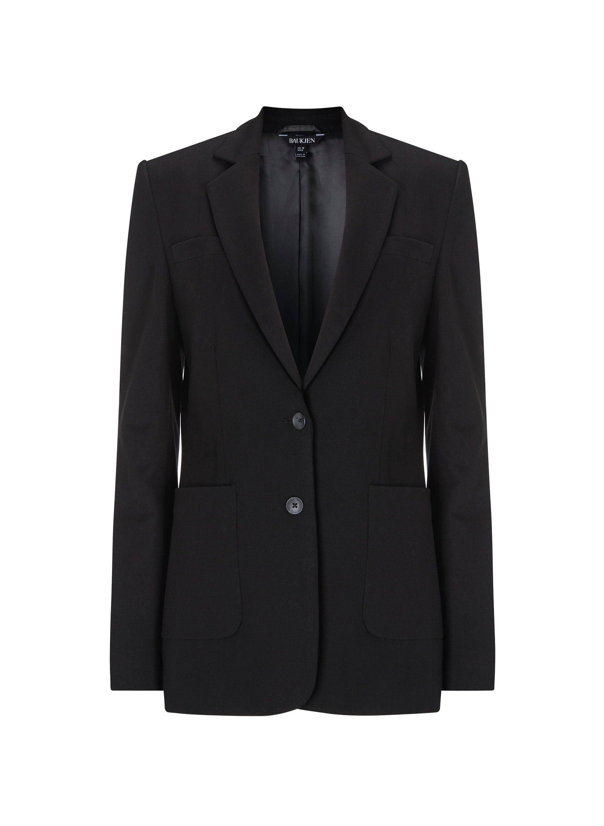 - Tailored style with shaped waist