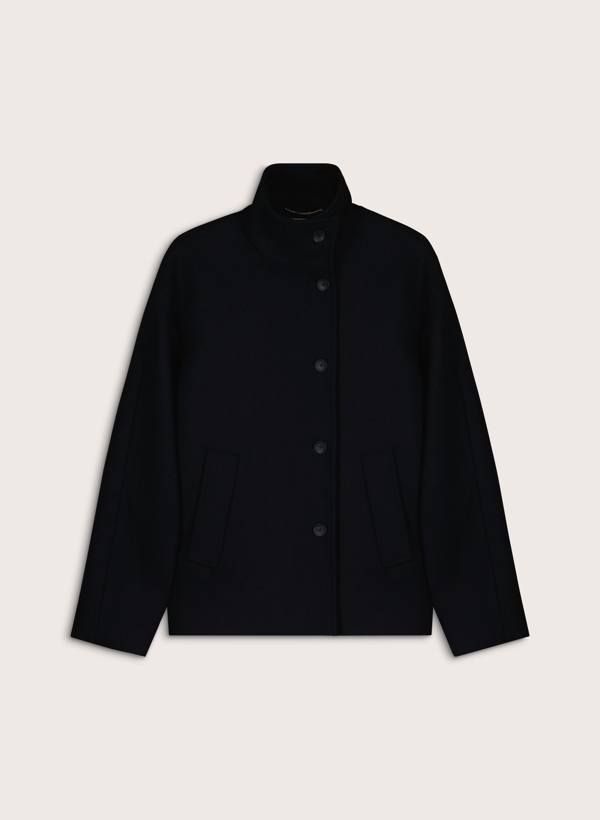 A short coat is perfect for getting through the shift in seasons and the Ashton Wool Coat ensures you do it in style! No ordinary jacket, it features a soft rounded shape, and button-front fastenings that are are slightly off-centre. Crafted in a recycled wool blend Melton, this premium fabric and navy colourway works just as well with tailored trousers for weekdays as with jeans on weekends. Topped with a chic funnel-neck, it’s a truly versatile option.