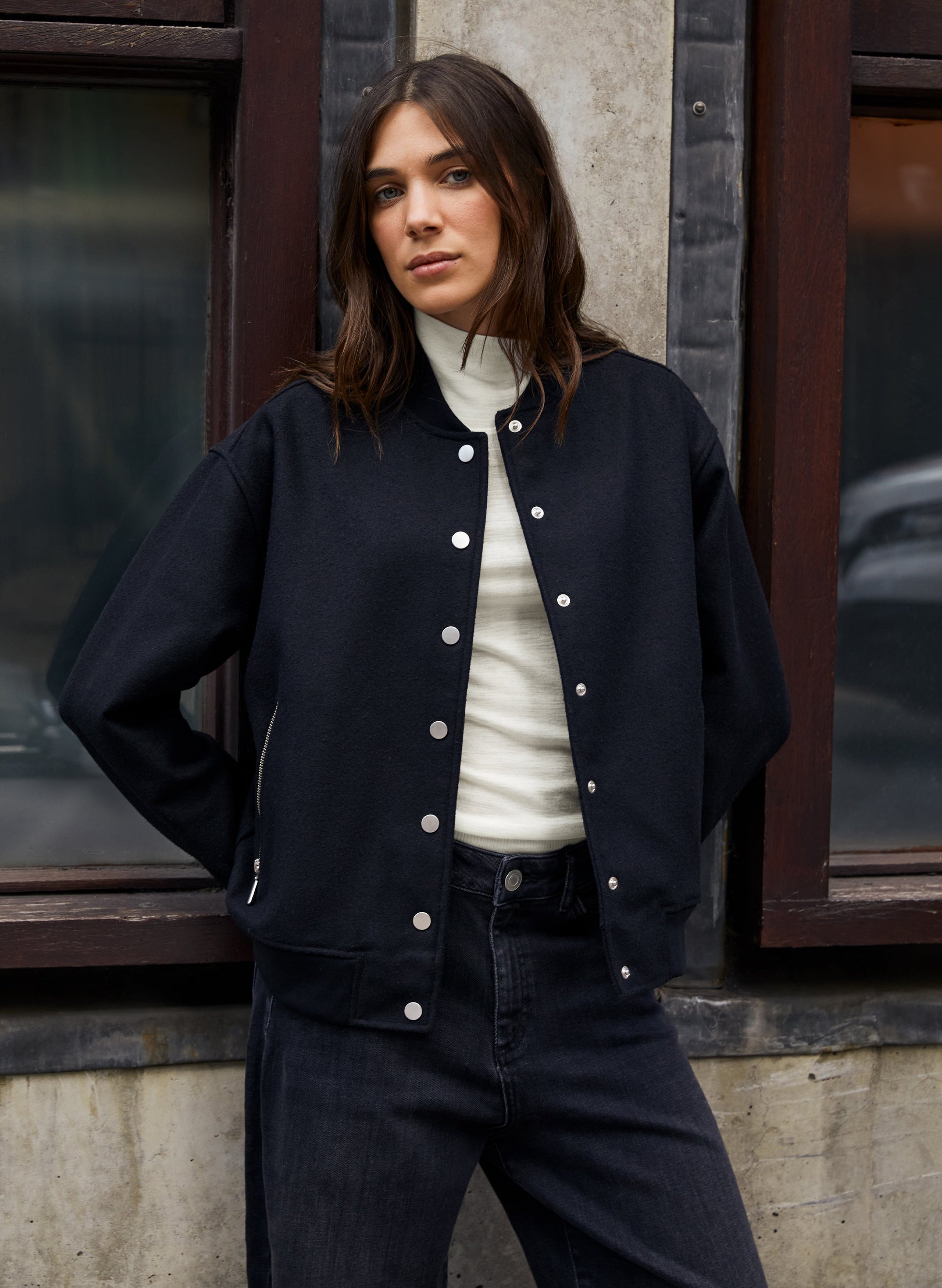 • Fine rib detail along hem and cuffs