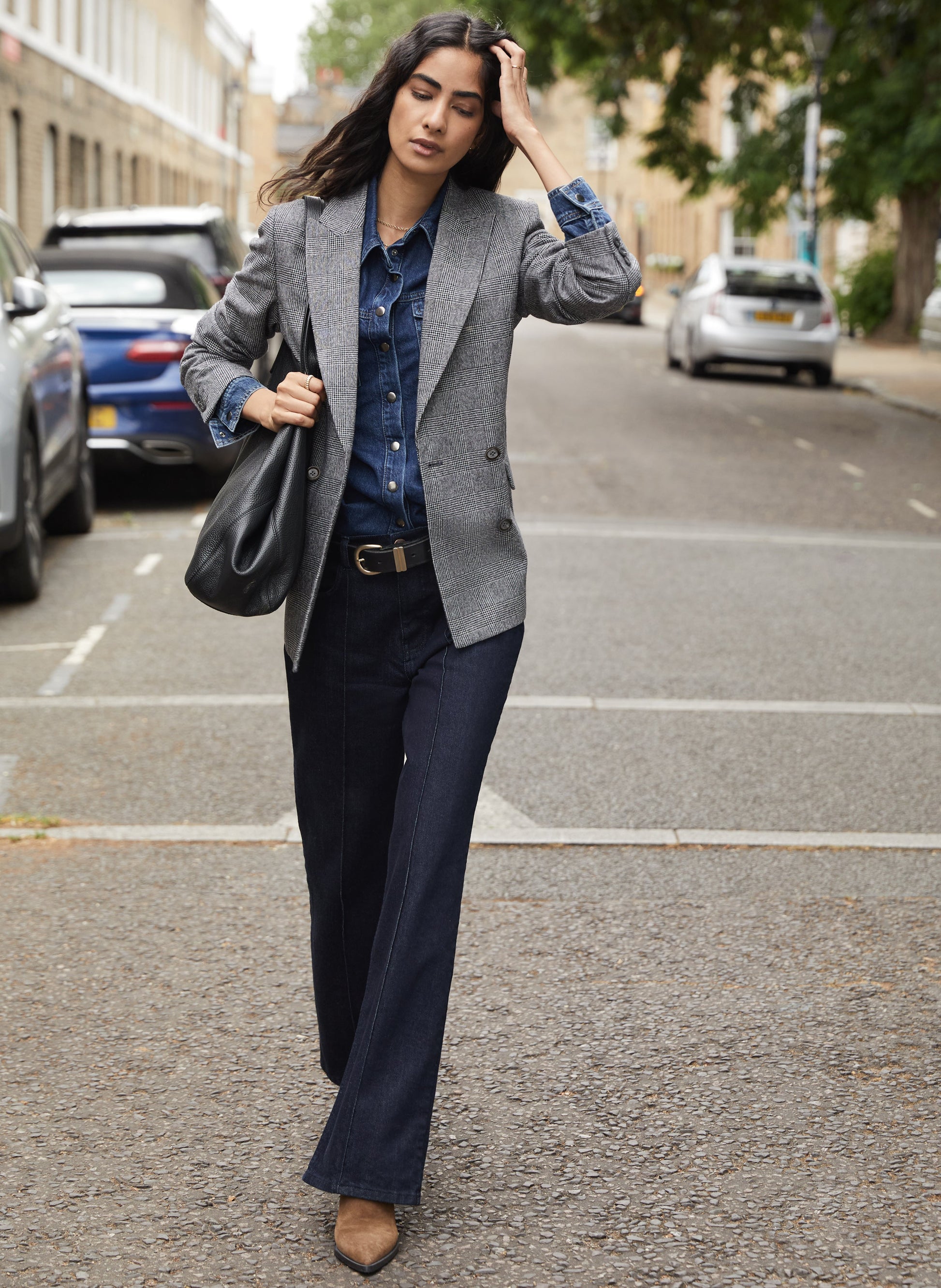 We refer to this style as a ‘smart jean’ because the combination of the super-dark wash and the pintuck detail down each leg sets it apart from casual denim. The wide-leg shape looks chic with a double-breasted blazer and heels, so you could even wear it into the office. Fitted around the hips and waist, the back of the waistband is considerately elasticated for maximum comfort. It’s a win-win for your wardrobe.