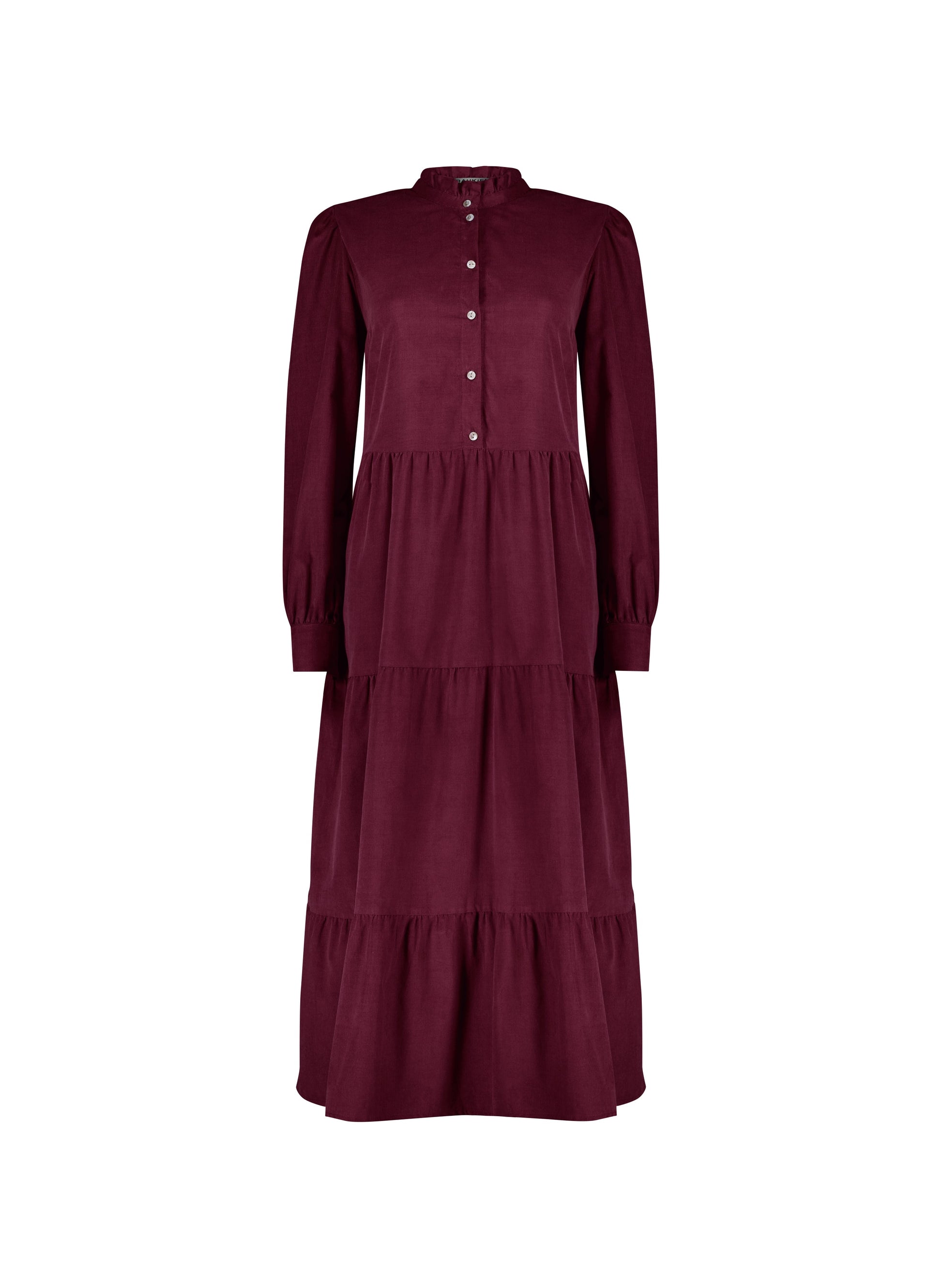 The Cadie in burgundy is exactly what you’ll want to wear for autumnal walks and cosy pub lunches. Its Victoriana-style ruffled collar and gathered shoulders make it unapologetically feminine, but its loose tiered skirt guarantees easy comfort. It is crafted from organic fine corduroy, so expect a rich texture and a new partner in crime for your favourite ankle boots.