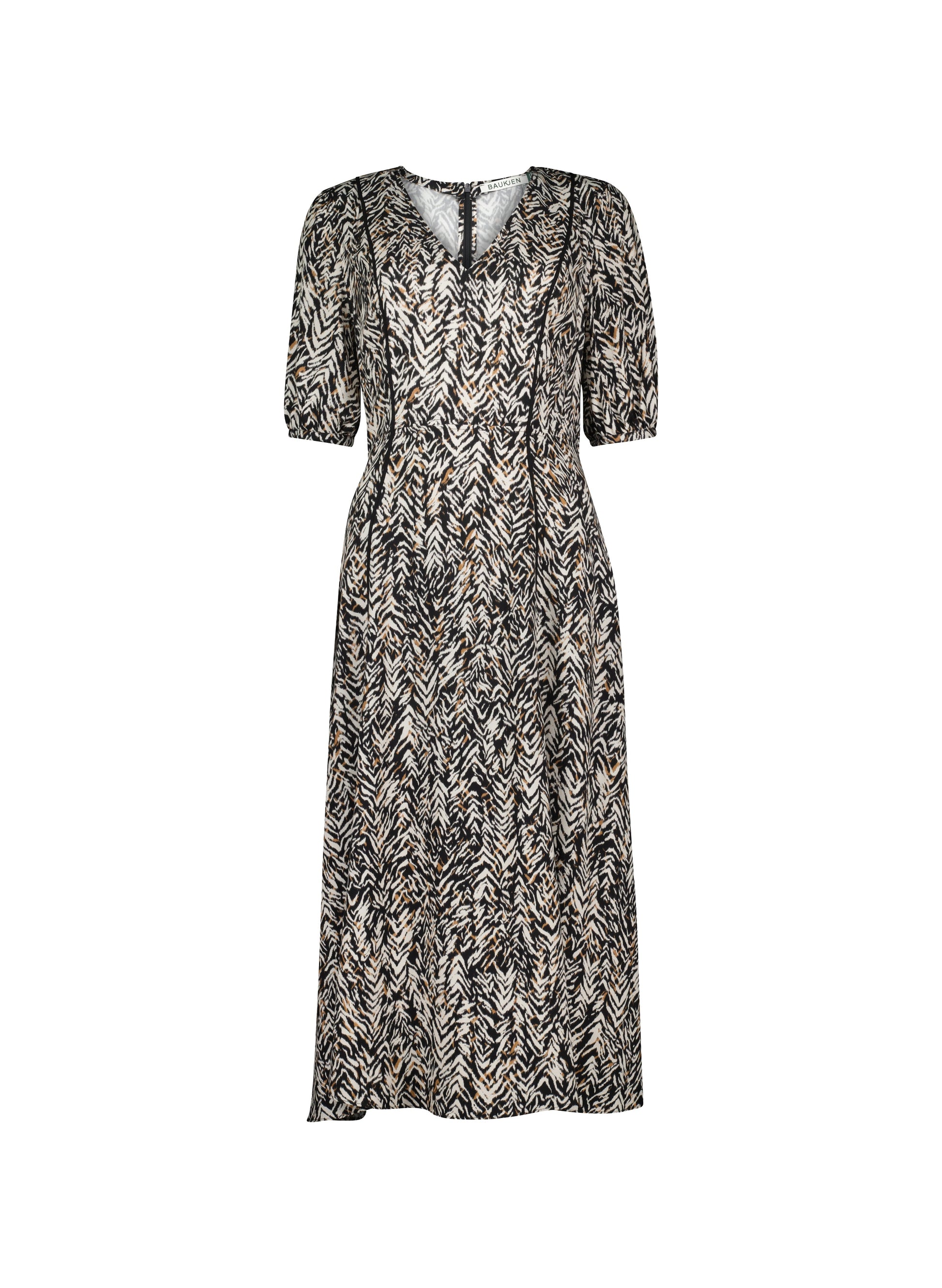 Meet the smart dress to see you through dinners and special occasions in effortlessly elegant style. The Callie combines a cool and contemporary shape with a versatile, abstract tiger print in black, off-white and caramel. Crafted in a sustainably sourced soft, twill fabric, its fit and flare cut skims the waist then flows out flatteringly.