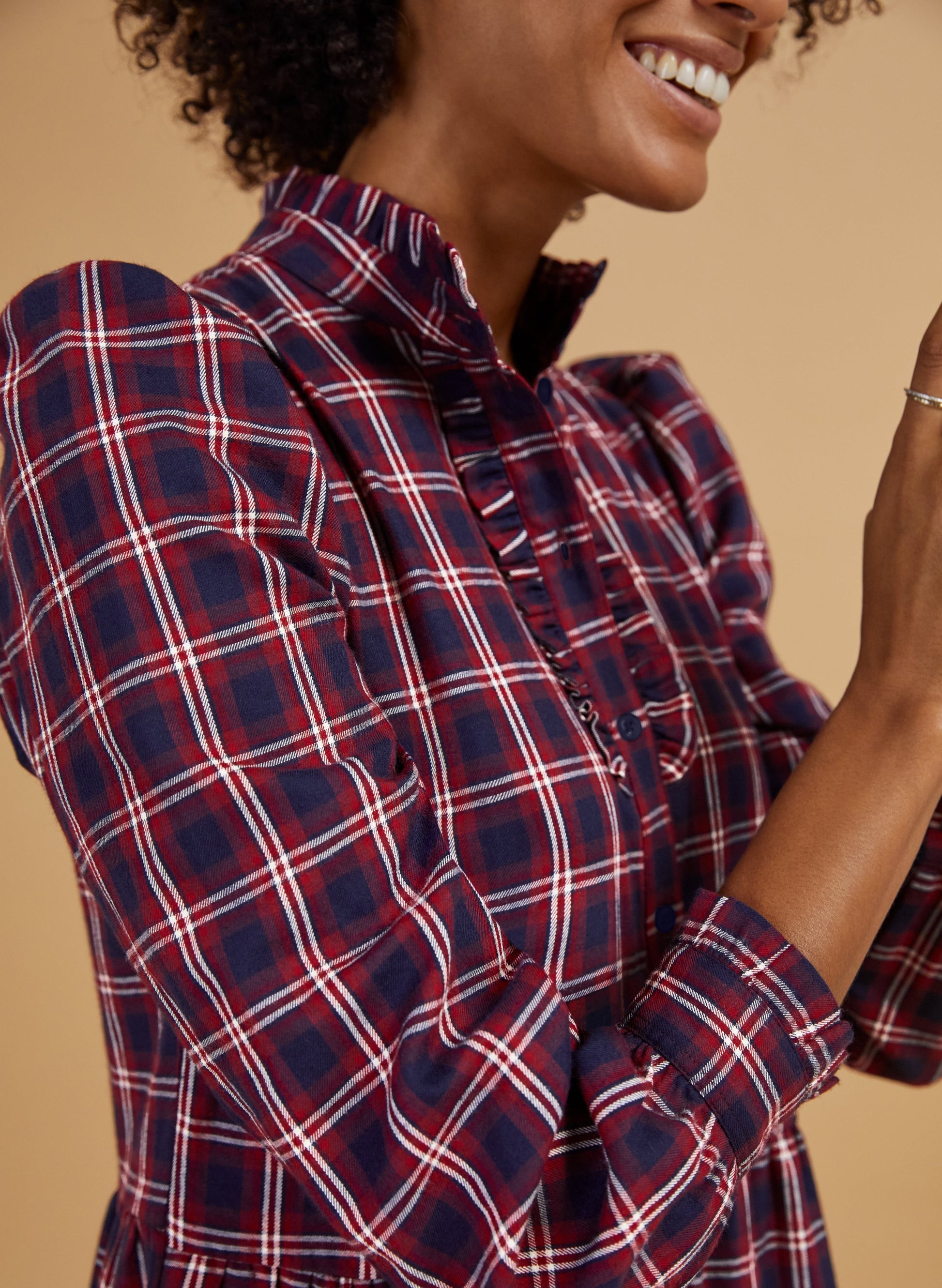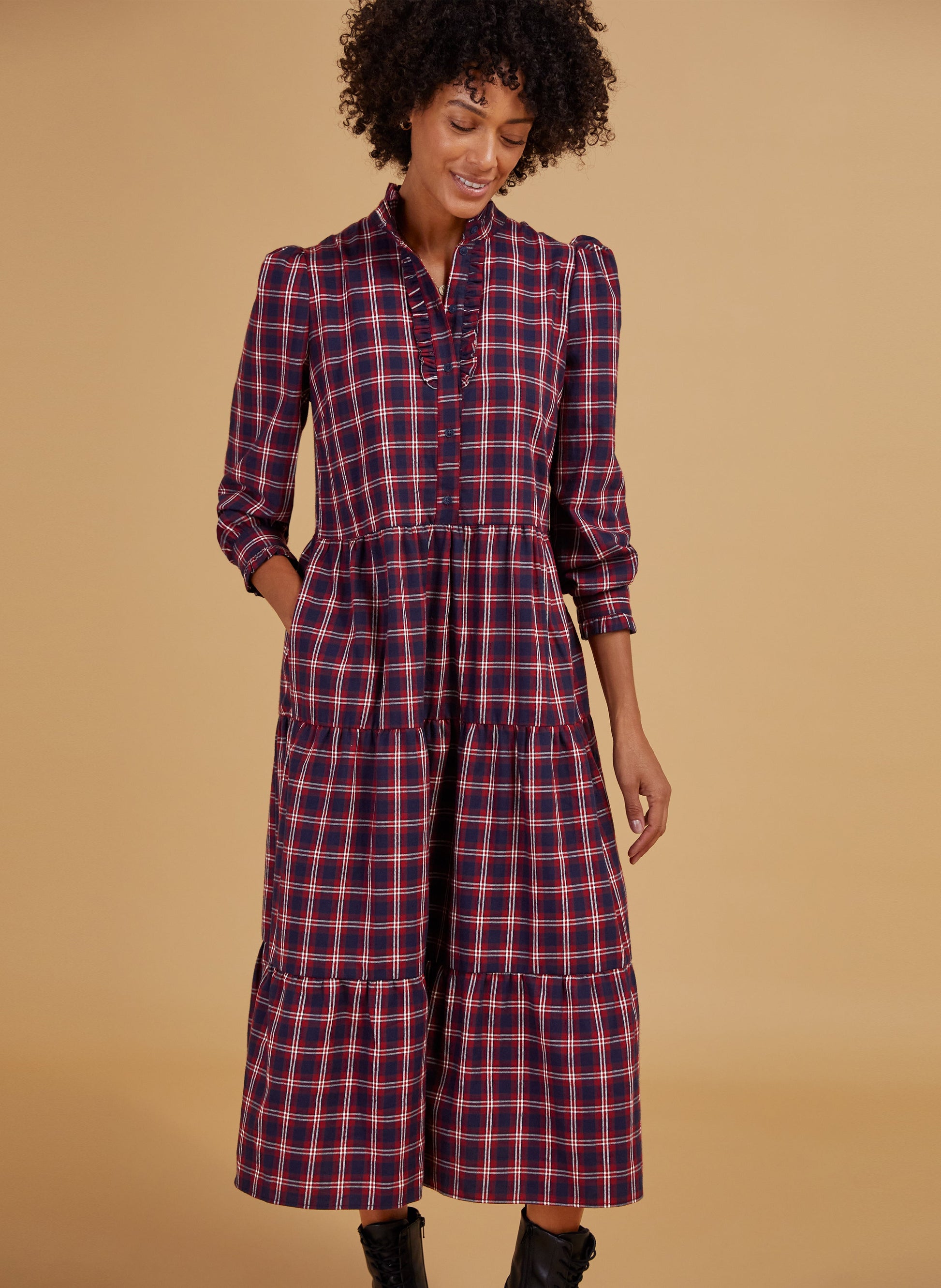 A relaxed checked dress with sleeves makes weekend dressing simple - whatever the weather is doing. The Cara’s ruffled collar and frilly placket and cuffs lend a feminine twist to a masculine pattern, and is so easy to throw-on with trainers or boots. The top half buttons down to the waist and there’s lots of volume in the sleeves - when the temperature really dips, layer in a slim-fitting rollneck for maximum wear.