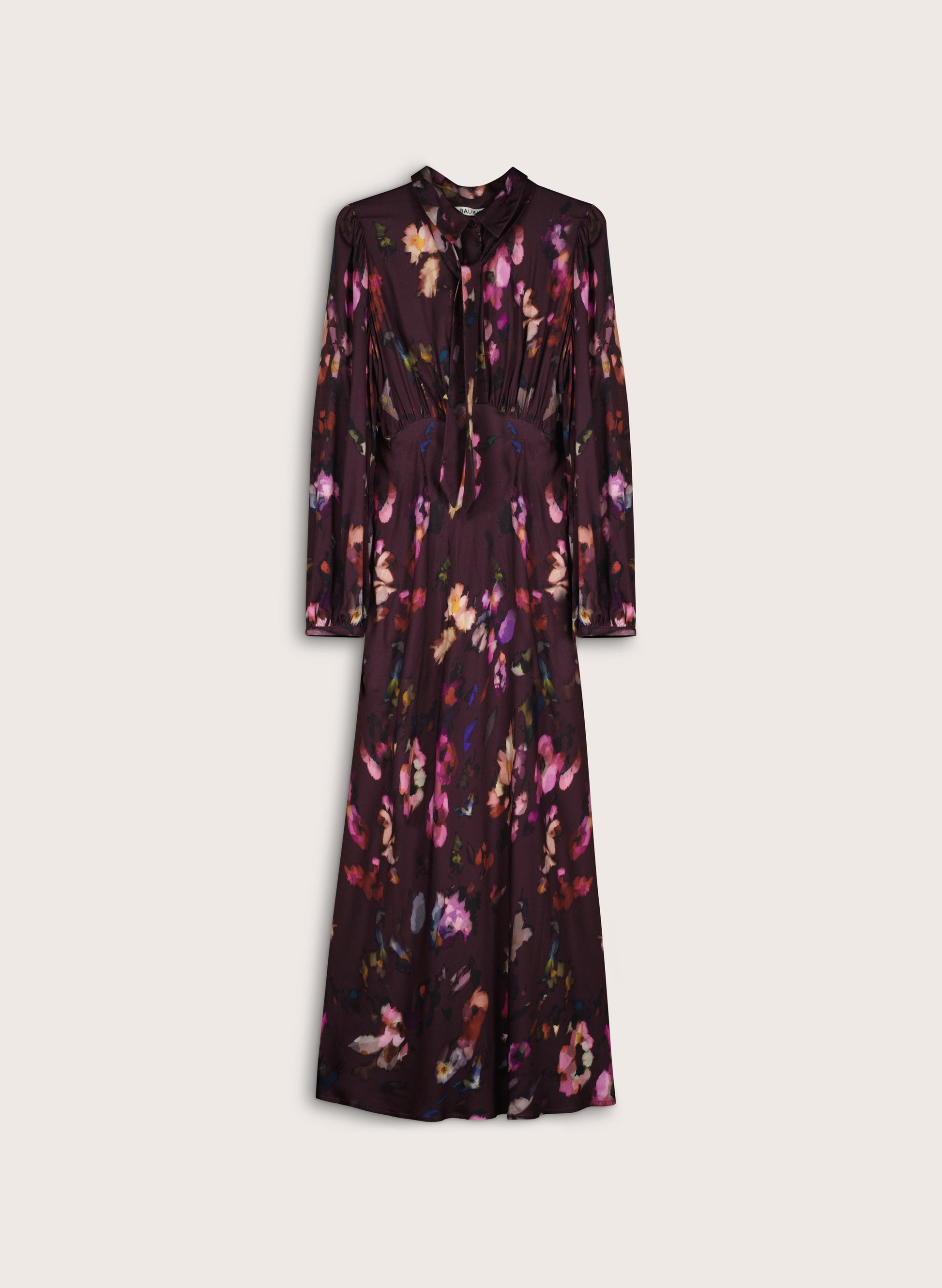 From work events to dinners, slipping into the elegant Charlotte Midi Dress will ensure you look and feel the part. This pretty design in satin boats a beautiful watercolour floral print and a top section offering myriad styling options: the coordinating neck tie can be removed or tied into a bow, and there are buttons through to the empire line seam, so you can wear the neckline open or closed. Shaped for a skimming fit along the body, the skirt is cut on the bias and is satisfyingly swishy.