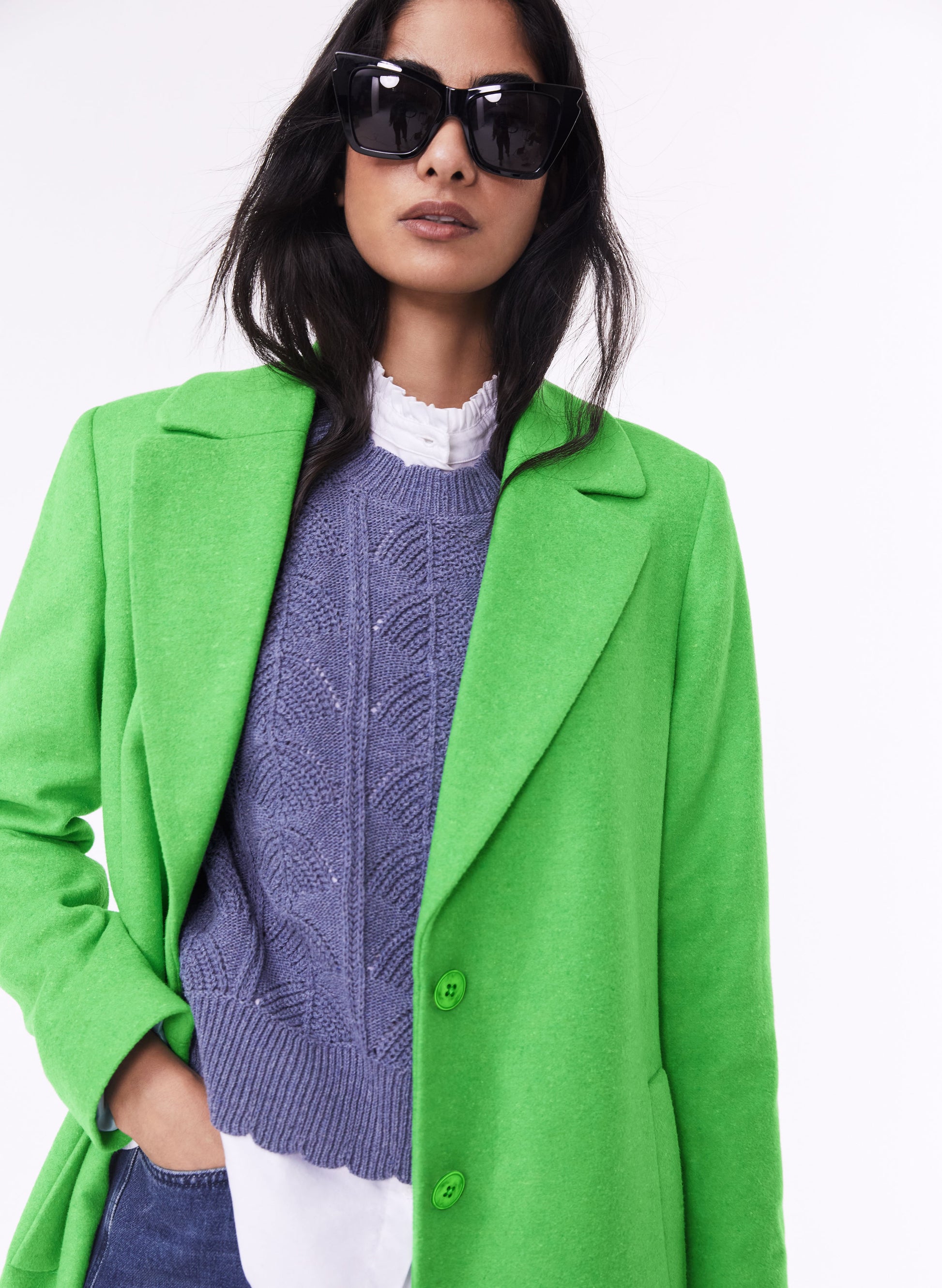 When the skies are grey, boost your mood by pulling on Emanuela. This coat in shades of bold, and crafted in recycled wool, has the power to transform any outfit - and uplift you! Cut for a relaxed, easy shape, it’s single-breasted with three simple button fastenings. Wear it to put a spring in your step any day of the week.