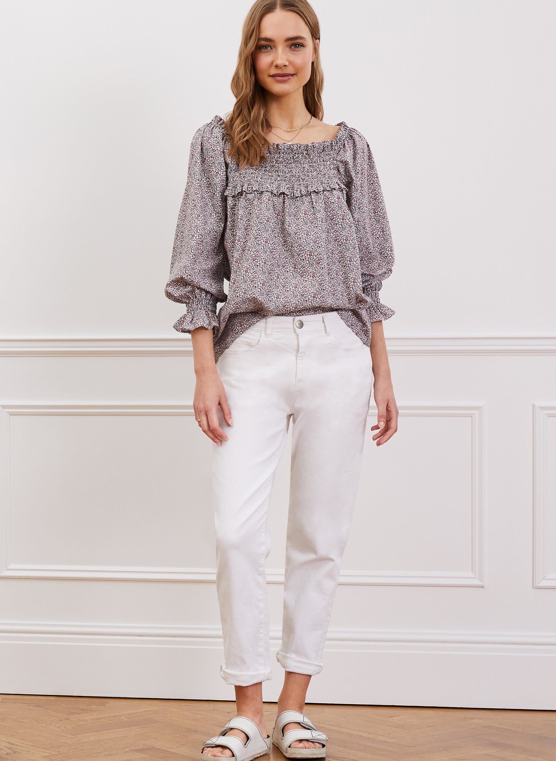 If pretty cotton tops are your weakness, then we challenge you to resist Emily! This organic cotton style boasts a flattering square neckline, a smocked chest panel and a relaxed fit - not forgetting the charming ditsy print. Relaxed through the body, you can style it tucked into jeans or loose over your favourite shorts.