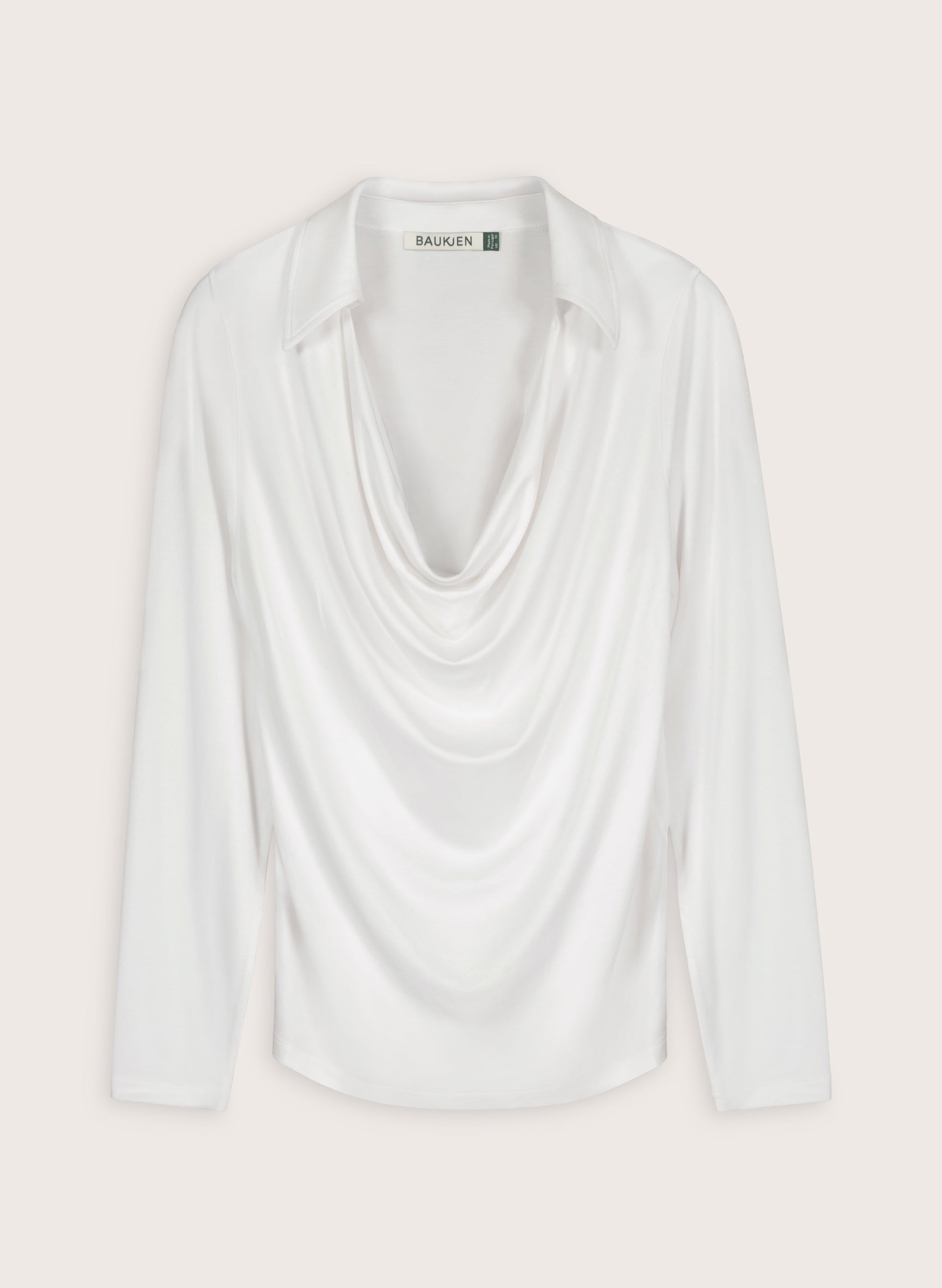For easy elegance, just add the Etta Top to any outfit. Crafted in our signature jersey, it’s soft and stretchy and cut for a slim fit through the body. What elevates its simple, feelgood design is a drapey cowl neck and crisp collar, providing a fresh update for styling trousers and skirts for work. It’s also the perfect top to take you onto after-hours fun!