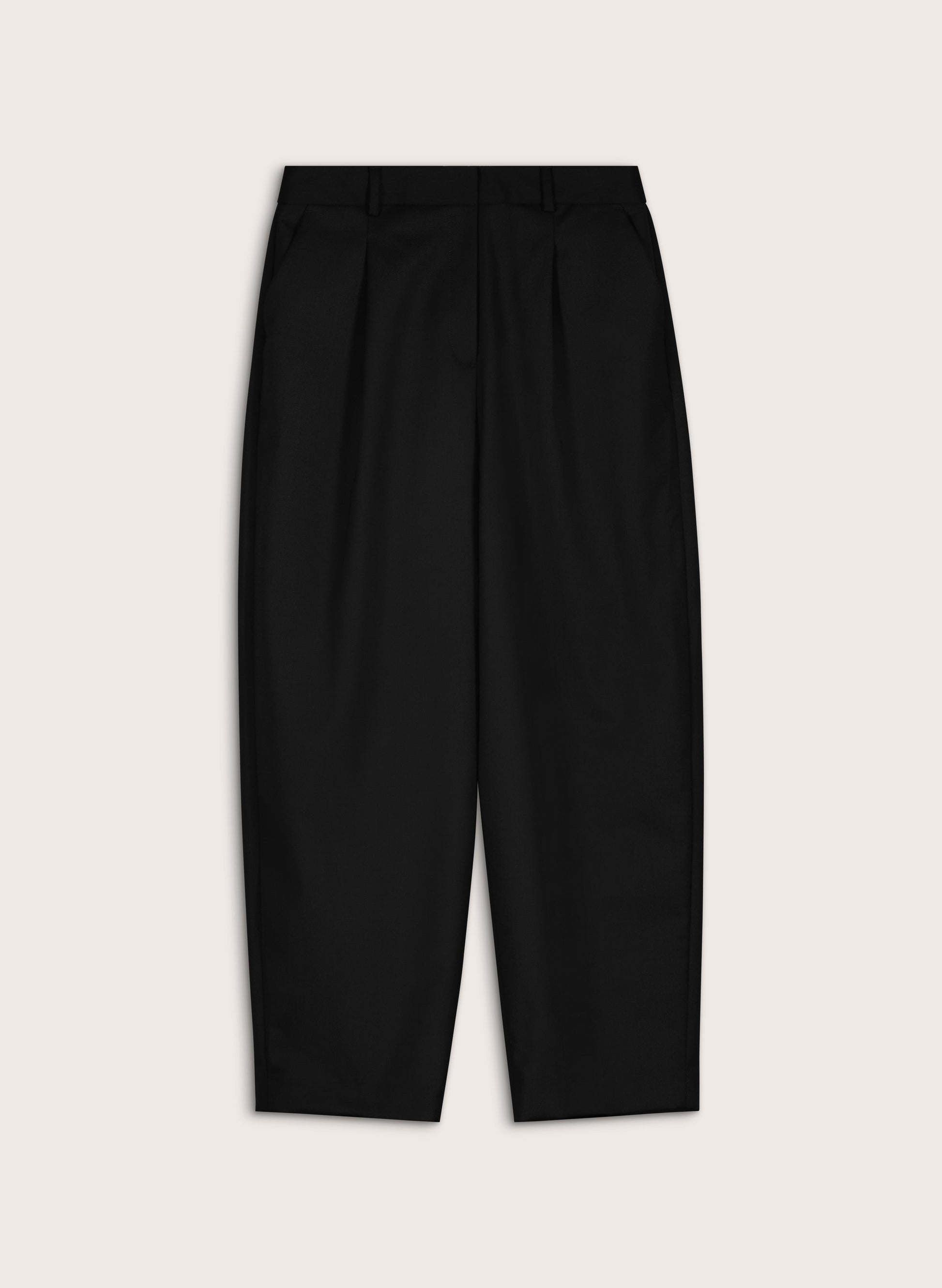 If you’re a barrel-leg jean convert then make a little space for the Evora Wool Trousers. They take the same cool shape - think fitted around the waist, curved out from the hips to the knees and tapered around the ankle with a crisp pleat down each leg. They come in a premium recycled wool blend in jet black for easy styling - just add your favourite tops for an instantly contemporary update.