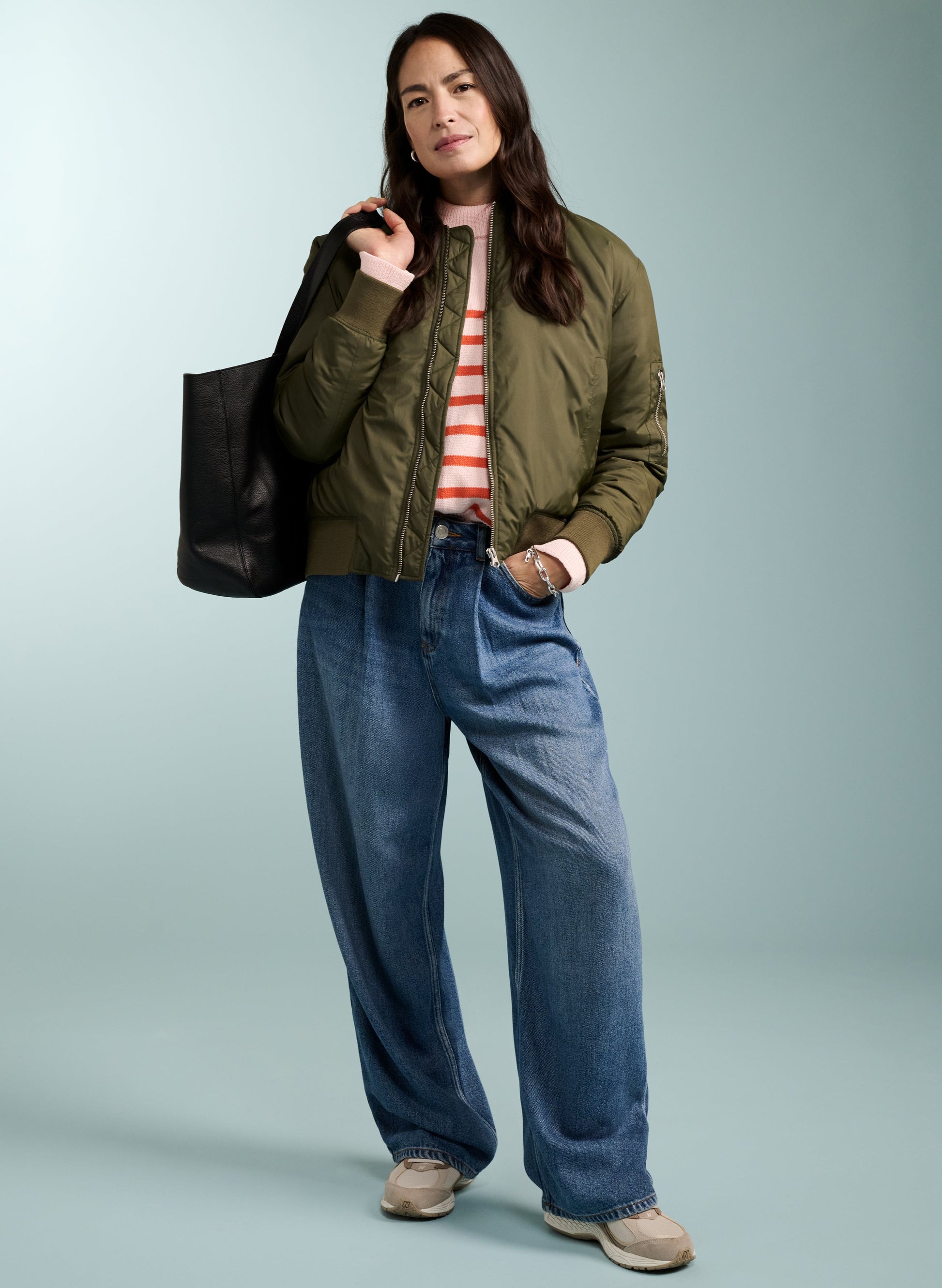 Love stripes? Hallie’s colour combination is sure to put a spring in your step. This jumper in heavyweight cotton comes in a soft, powder pink base with a pop of zingy orange for a fresh twist on nautical-inspired style. Timeless and effortless, it’s a style which goes with all shades of denim.