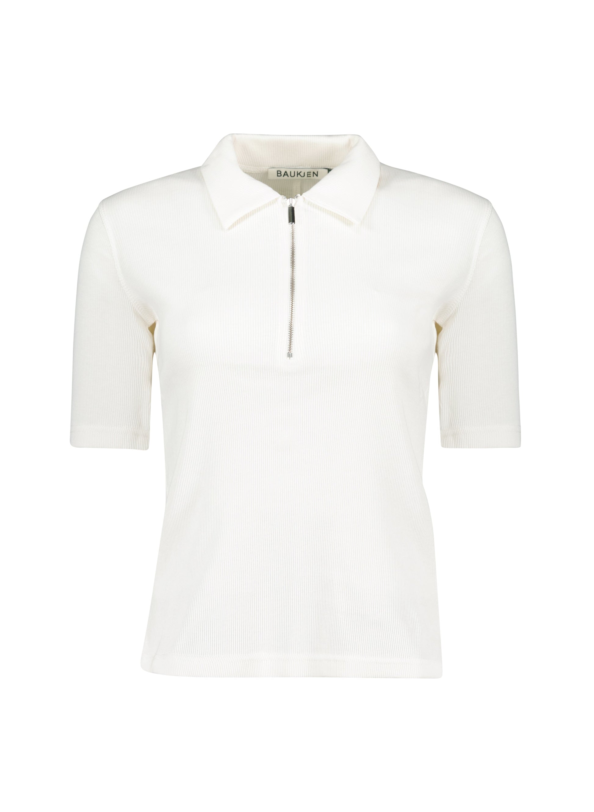 Ivy provides an effortless twist on a casual tee. Crafted in soft, organic cotton ribbed jersey, it features a neat collar and sleek zip opening. Its short sleeves and slim fit make it so easy to style: try it with tailored trousers for the office or dress it down with jeans and a utility jacket.