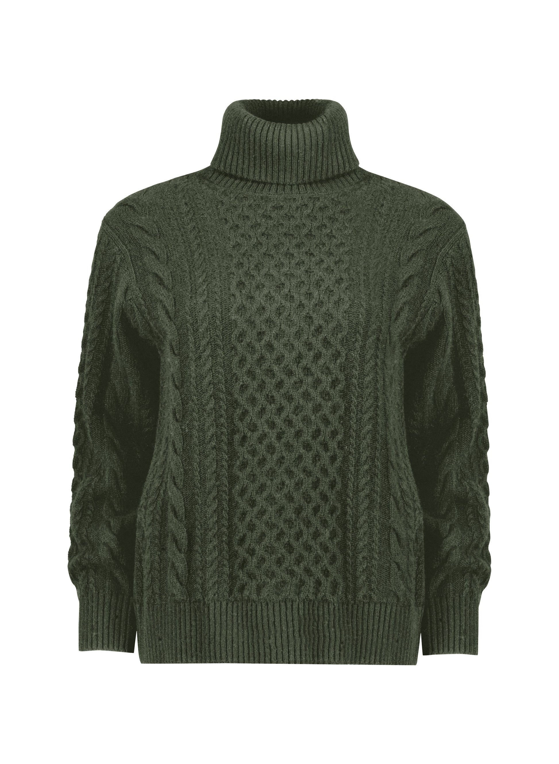 The Juno Wool Blend Jumper is a mix of all our favourite details when it comes to knitwear, such as a cable weaving, a high neck and a relaxed fit. Made from a midweight blend of recycled wool in a hardworking shade of Dark Olive, we think you’ll love it just as much as we do. Reach for it on cold days with your favourite jeans and wrap up in style.