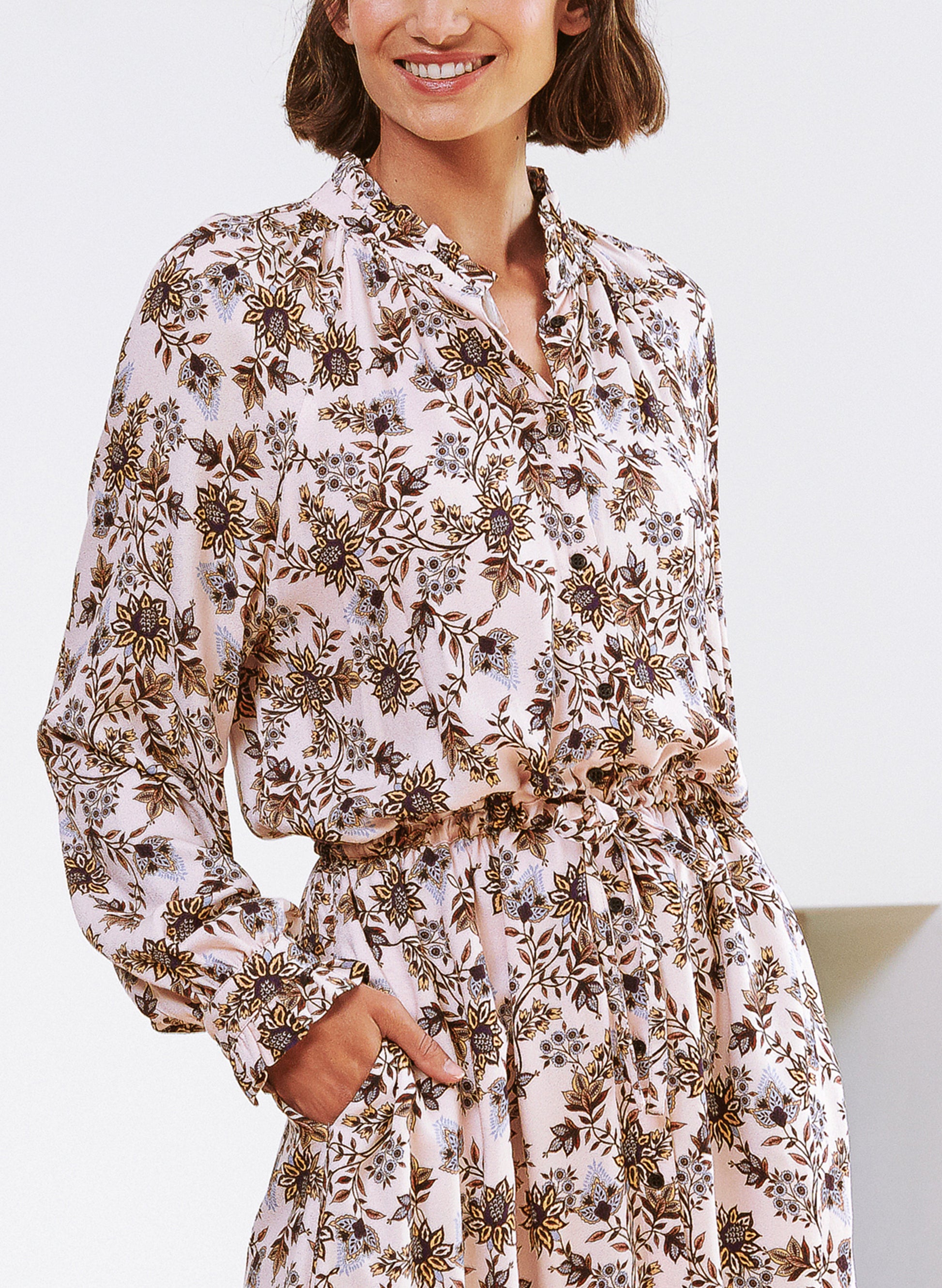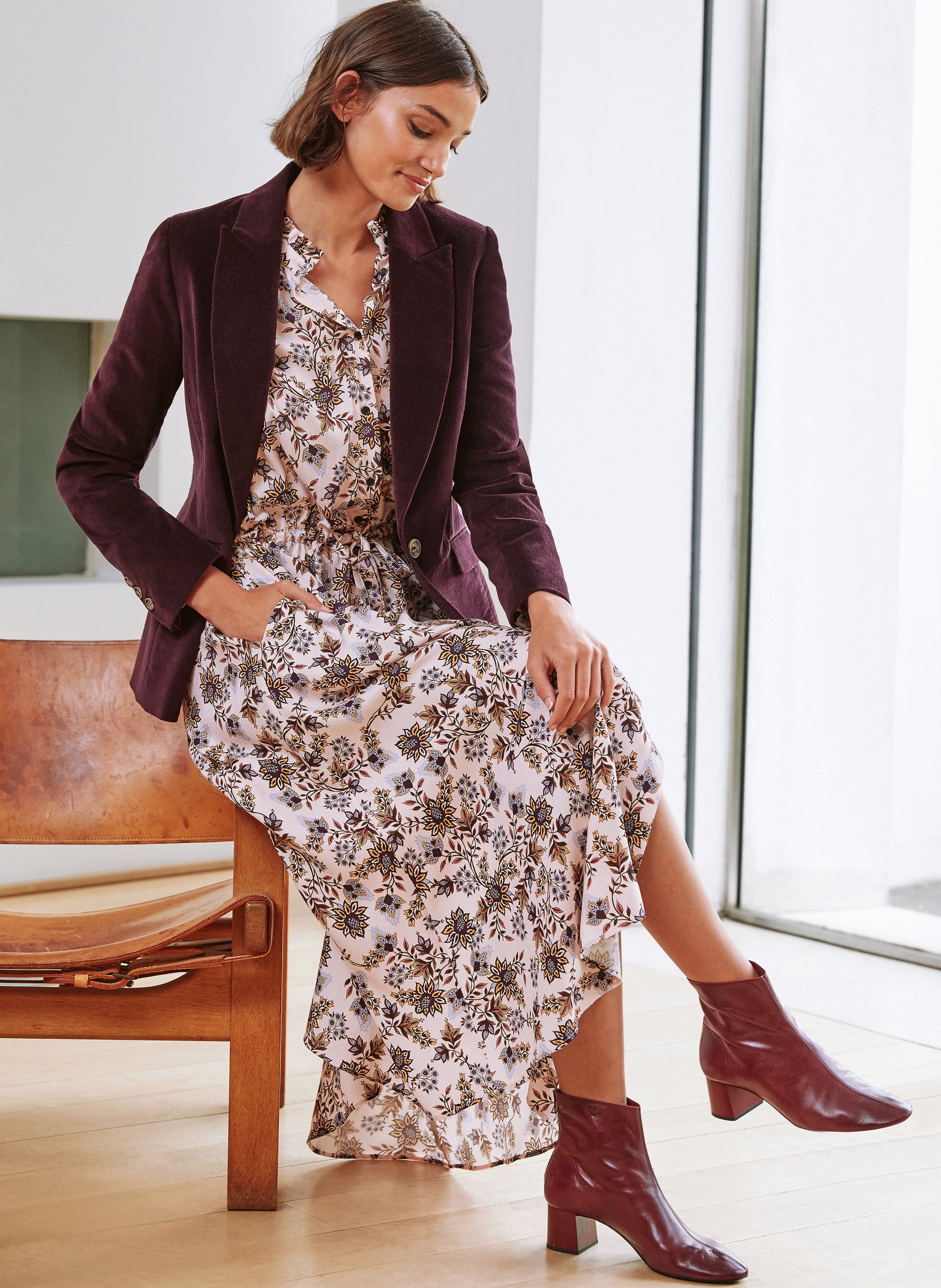 Try something romantic this season with the Keira Dress. Our love of floral prints goes well beyond the summer months, transitioning into pretty, muted tones. A winner for all day elegance, this midi dress features ruffle hems and a drawstring waist that you can tailor to your style. Finish with a pair of ankle boots during the day and add heels in the evening – totally effortless.