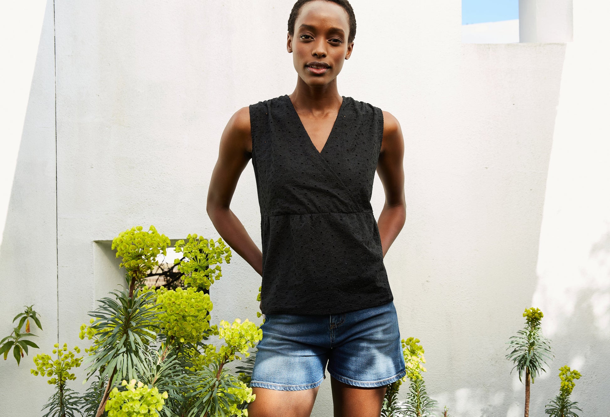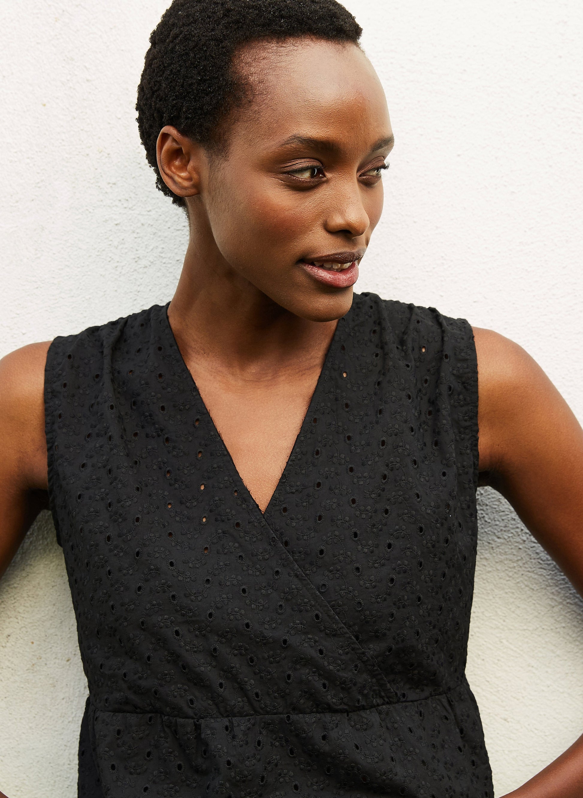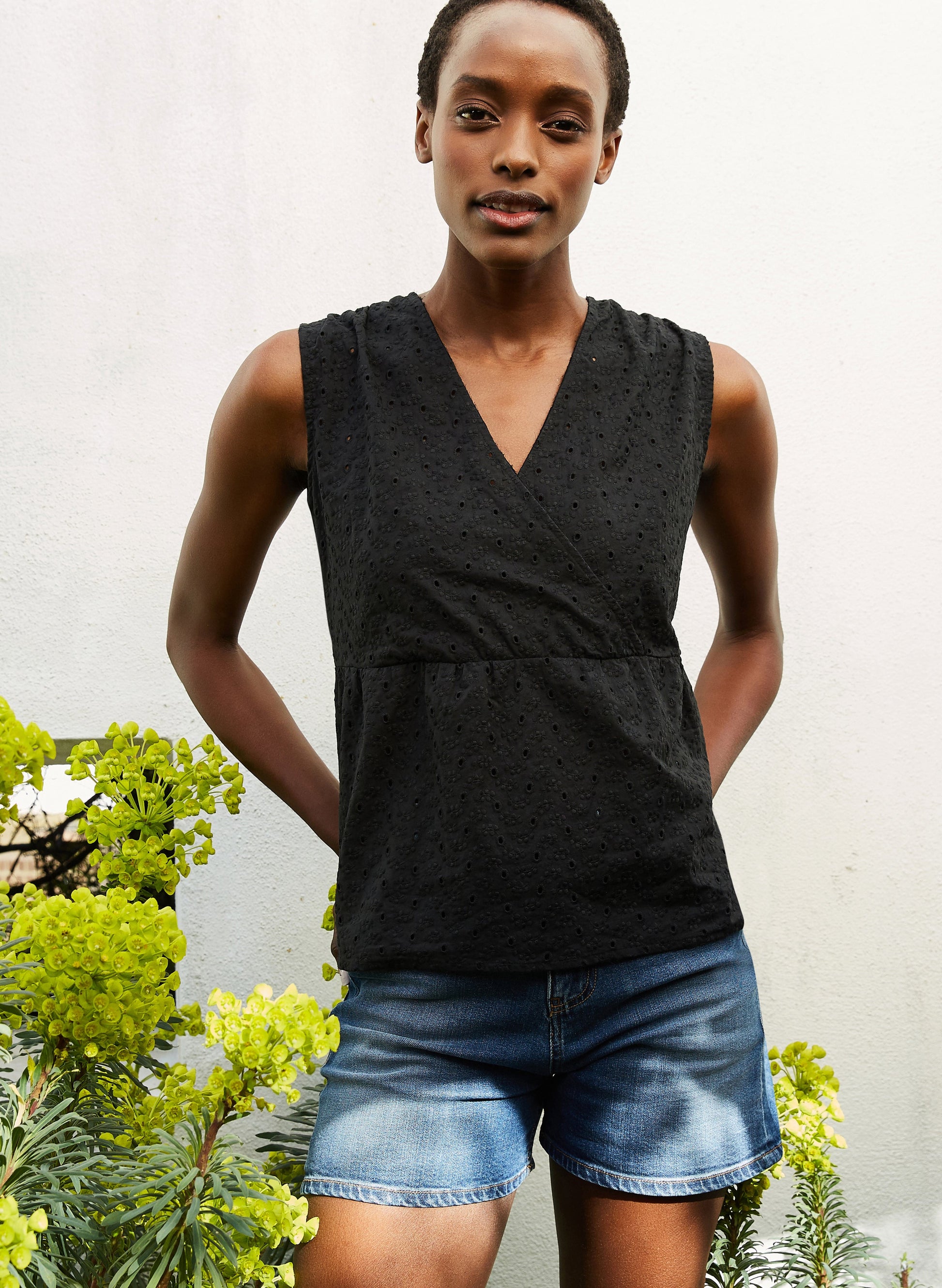 A wrap-effect top that you simply pull on? That'll be Kloe! This easy style is crafted from a pretty cutwork cotton that makes it ideal for adding some embellishment to denim and casual chinos. Fully lined, it has a seam under the bust but comes in a loose fit and features a shallow v-neck.
