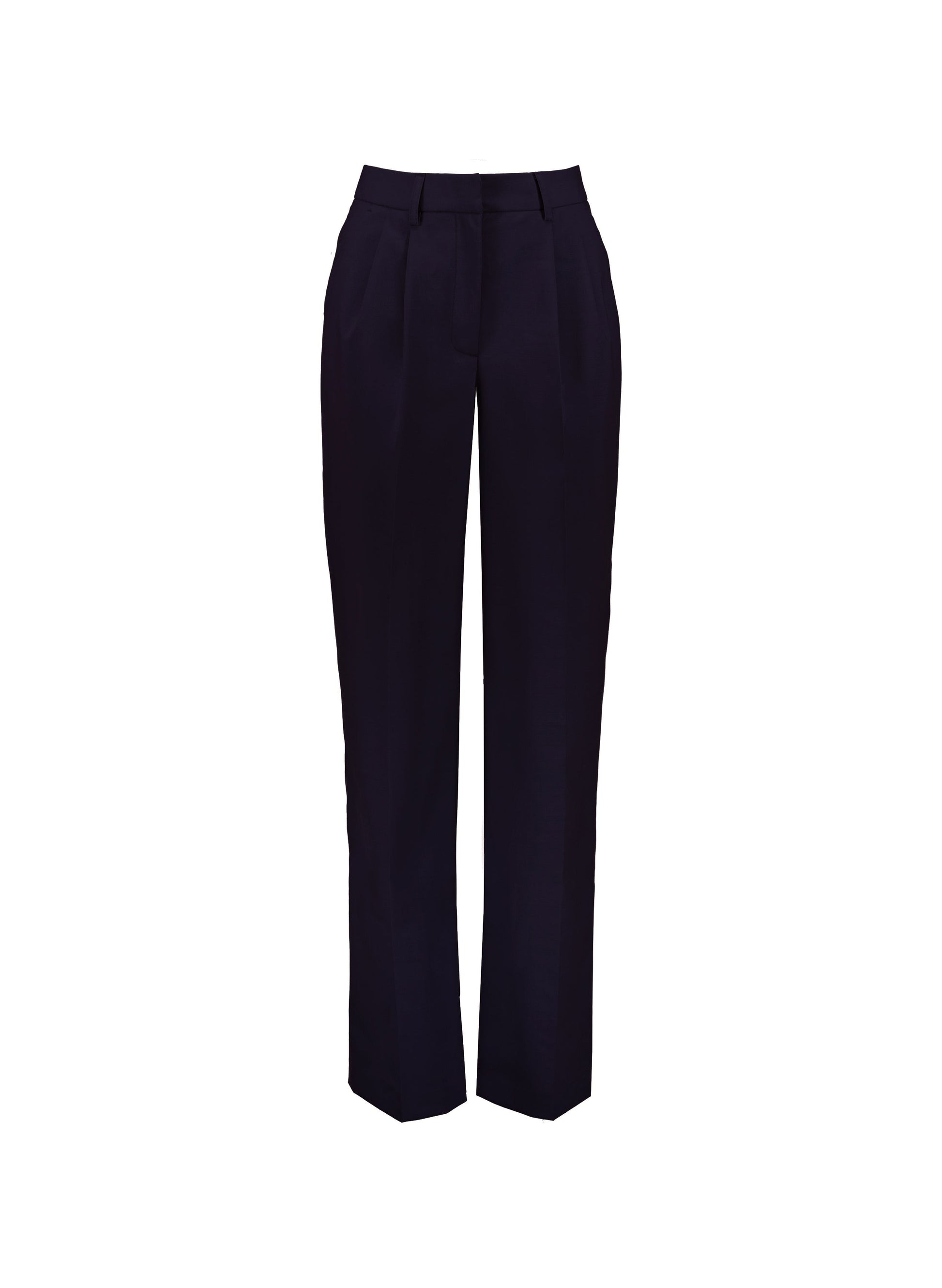 Wide-leg trousers aren't going anywhere, so we've created a tailored style in versatile, classic navy. This borrowed-from-the-boys style is made using fabric which would otherwise go to waste, and cut with a pleated front. Style them with a little black top and trainers, or with the matching Vanity Blazer and heels for head-to-toe co-ordination.