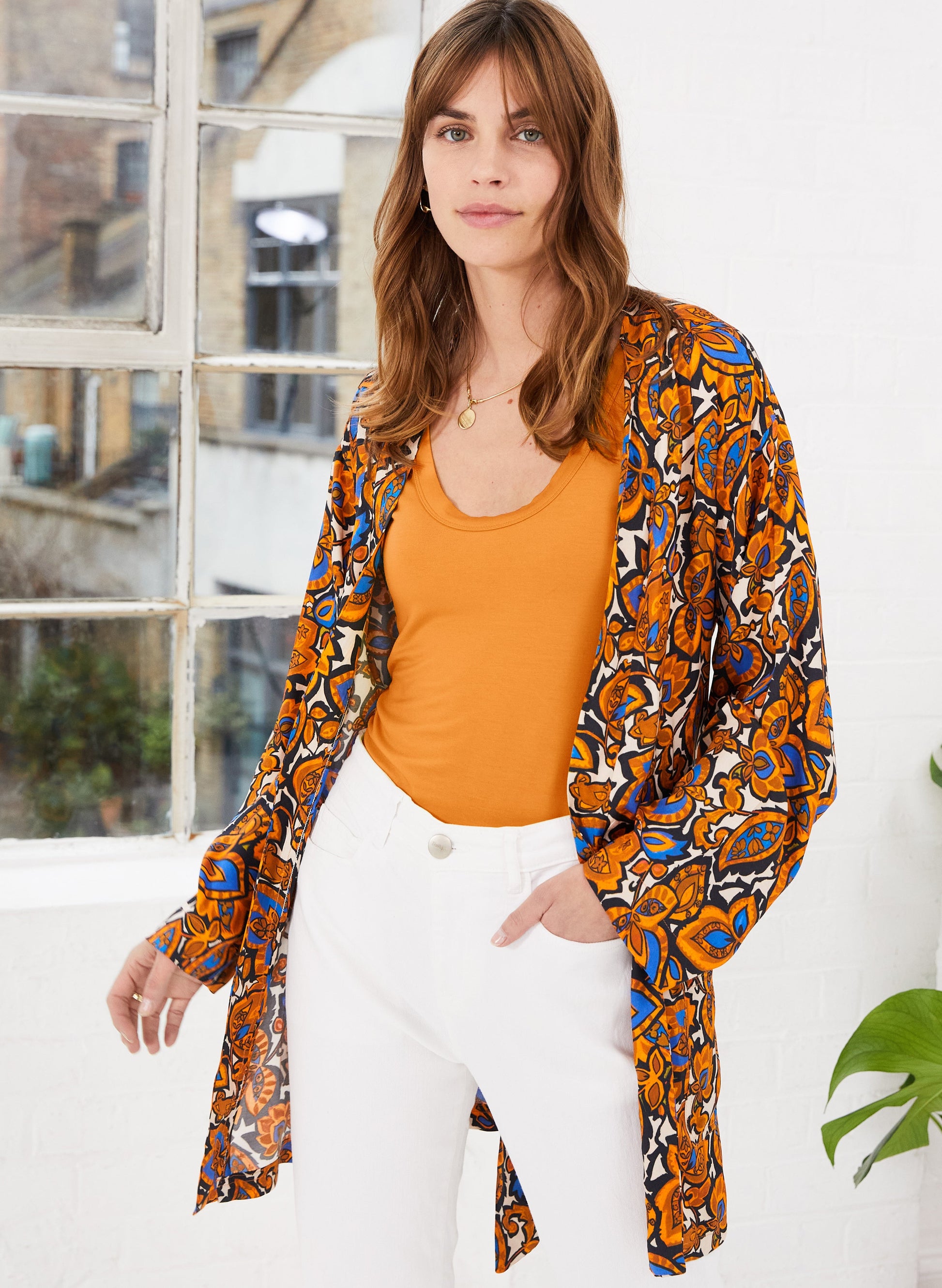 We’re partial to a kimono, not only because it acts as a poolside cover-up, but because it’s also a chic layer for cool evenings and for jeans and vest top looks. The Mila comes in our glamorous Amalfi print and is designed to fall below the bum. It goes effortlessly with white, indigo and black, but our favourite combination is to sport it with the matching Mila Shorts.