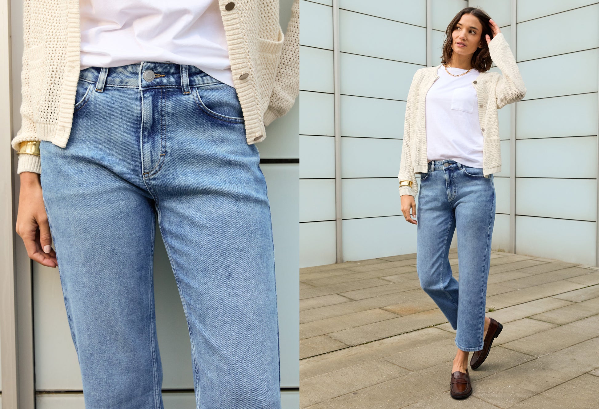- Crafted in organic cotton denim with stretch