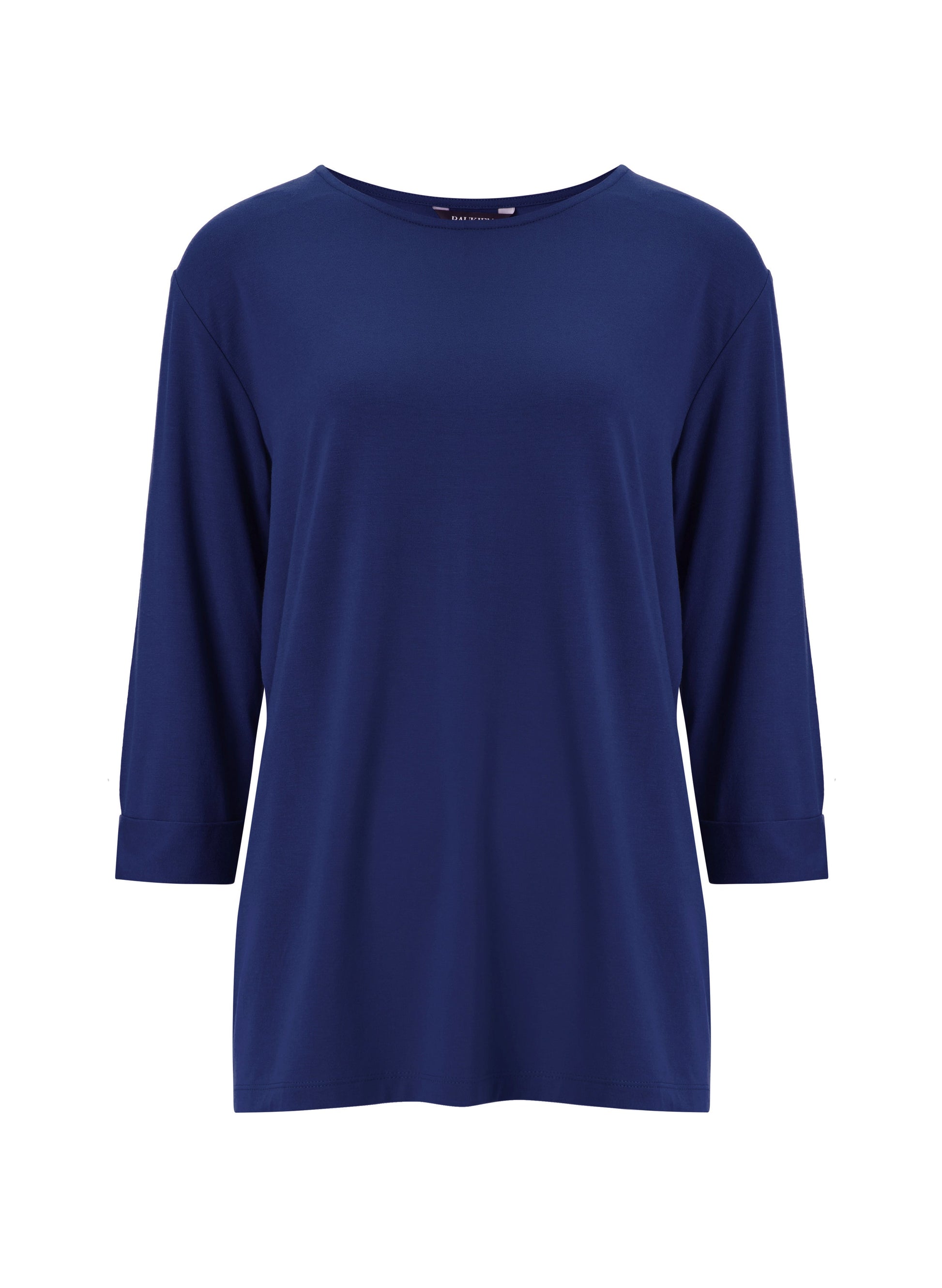 A comfortable, yet elegant wardrobe classic that can be worn with just about anything. 3/4 length sleeves with fixed roll up cuffs add chic details to the flattering EcoVero™ jersey Marnie Top. Just add jeans for easy elegance.
