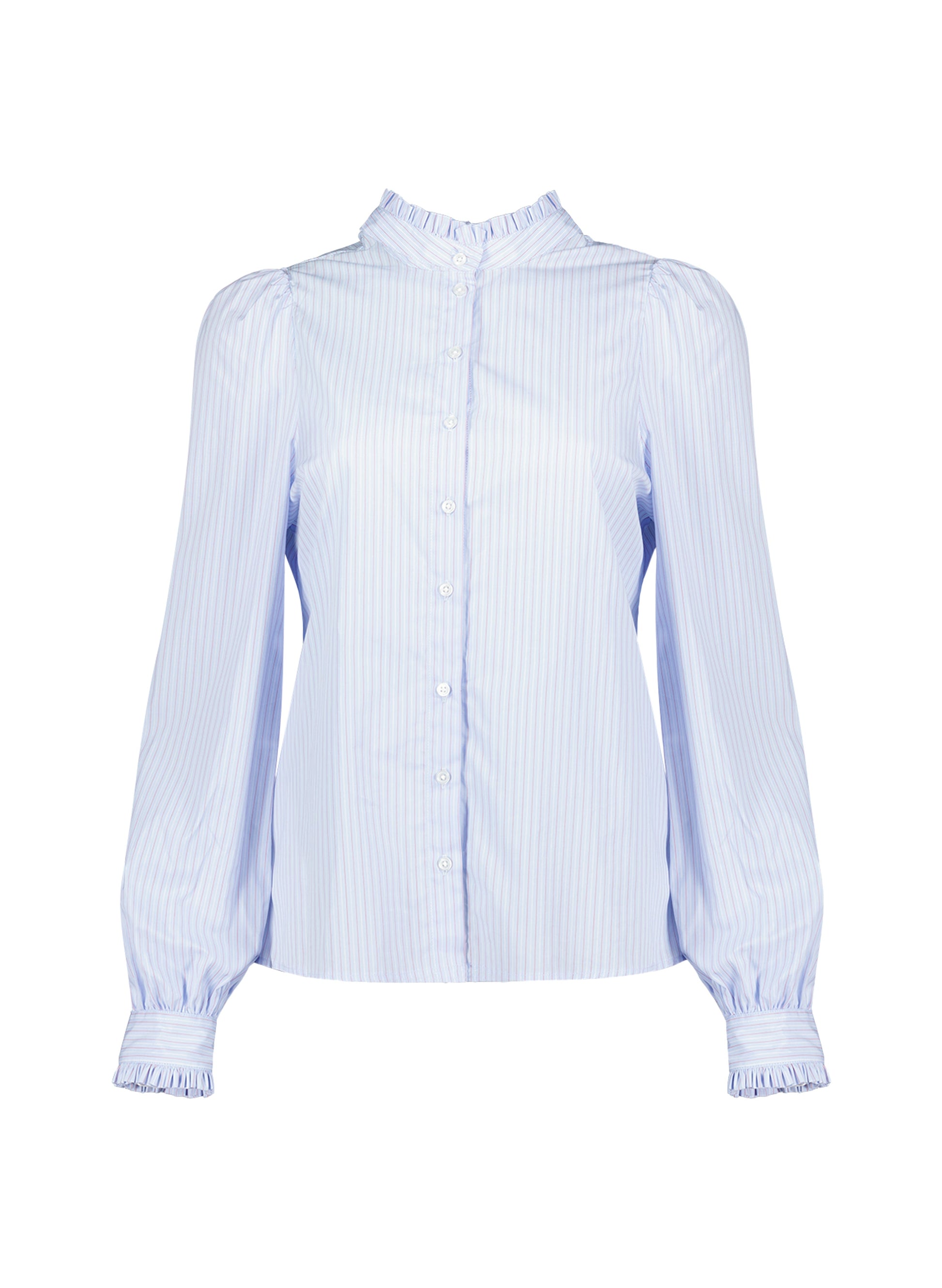 Ryleigh packs a punch when it comes to both details and styling potential. Note its high frill neck, gathered shoulders and ruffled cuffs - feminine touches for a fresh twist on a wardrobe classic. It looks good with trousers anytime of year, and it’s also effective layered under knitwear as the collar and cuffs poke out. It’s crafted in organic cotton, of course.