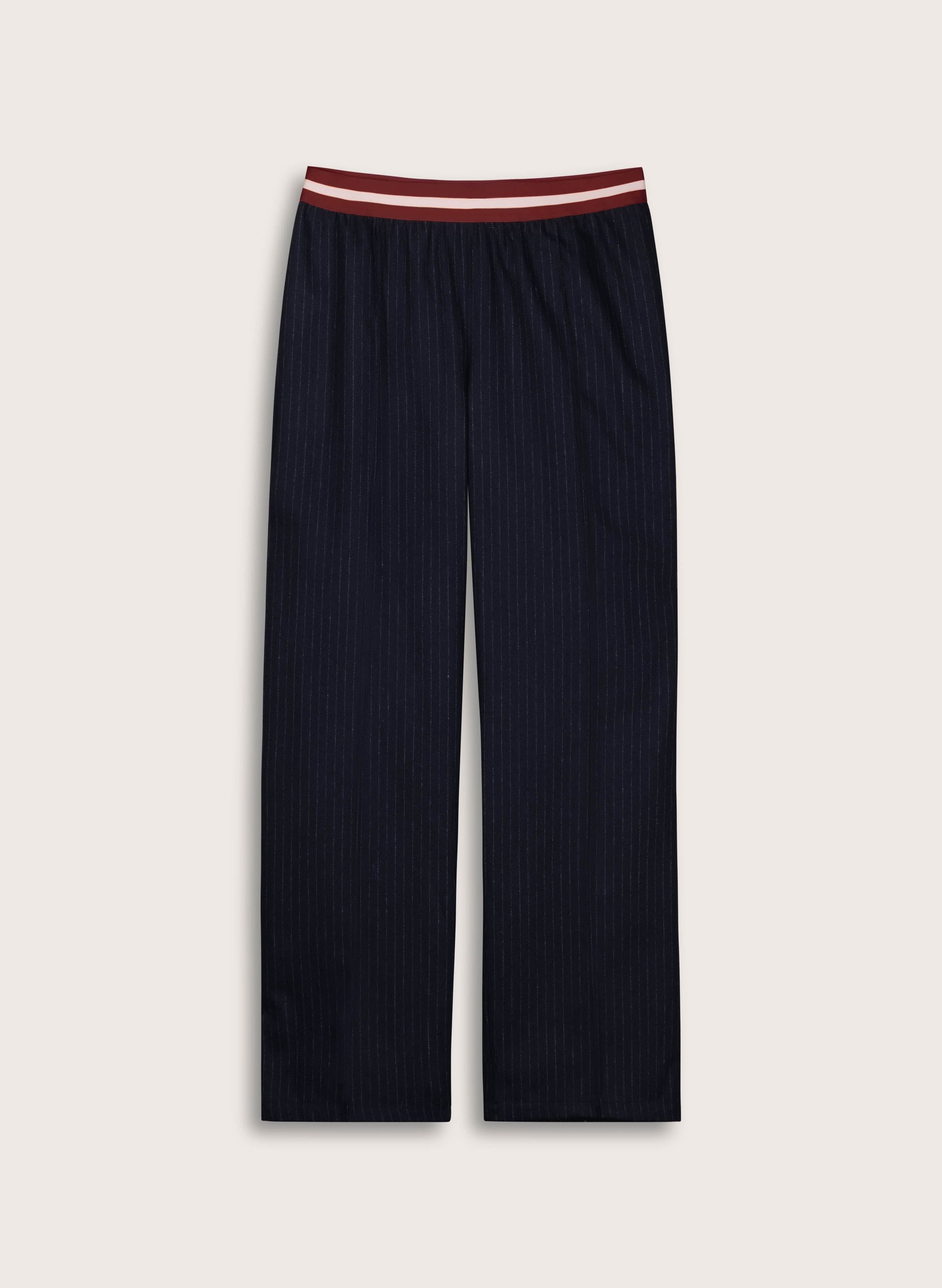 Take a classic tailoring pinstripe fabric, add an elasticated waistband and you get our extremely desirable Remy Trousers! This ingenious style puts a fresh spin on workwear with a relaxed wide-leg shape and a sporty waist which means they simply pull on. So comfortable, just add a white tee and the matching Carson Pinstripe Blazer.