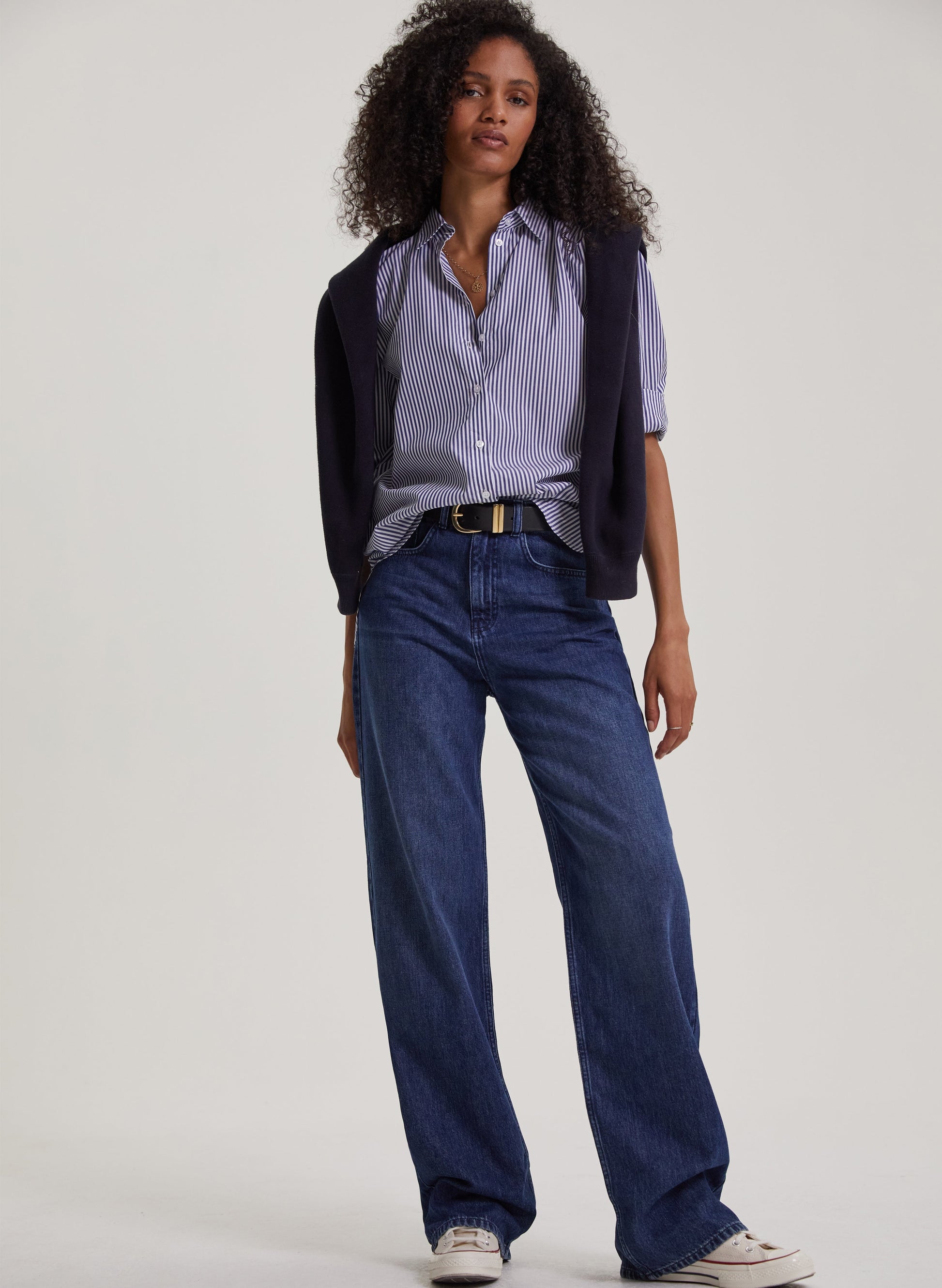 We’ve got a soft spot for classic men’s shirting which is why we’ve added Saera in timeless blue and white stripes to our offering. This is a crisp, goes-with-everything separate, which we love effortlessly styled with white denim or our Fera pants in high-contrast green. Expect an untailored and slightly oversize fit - literally as if you’d borrowed it from the boys!
