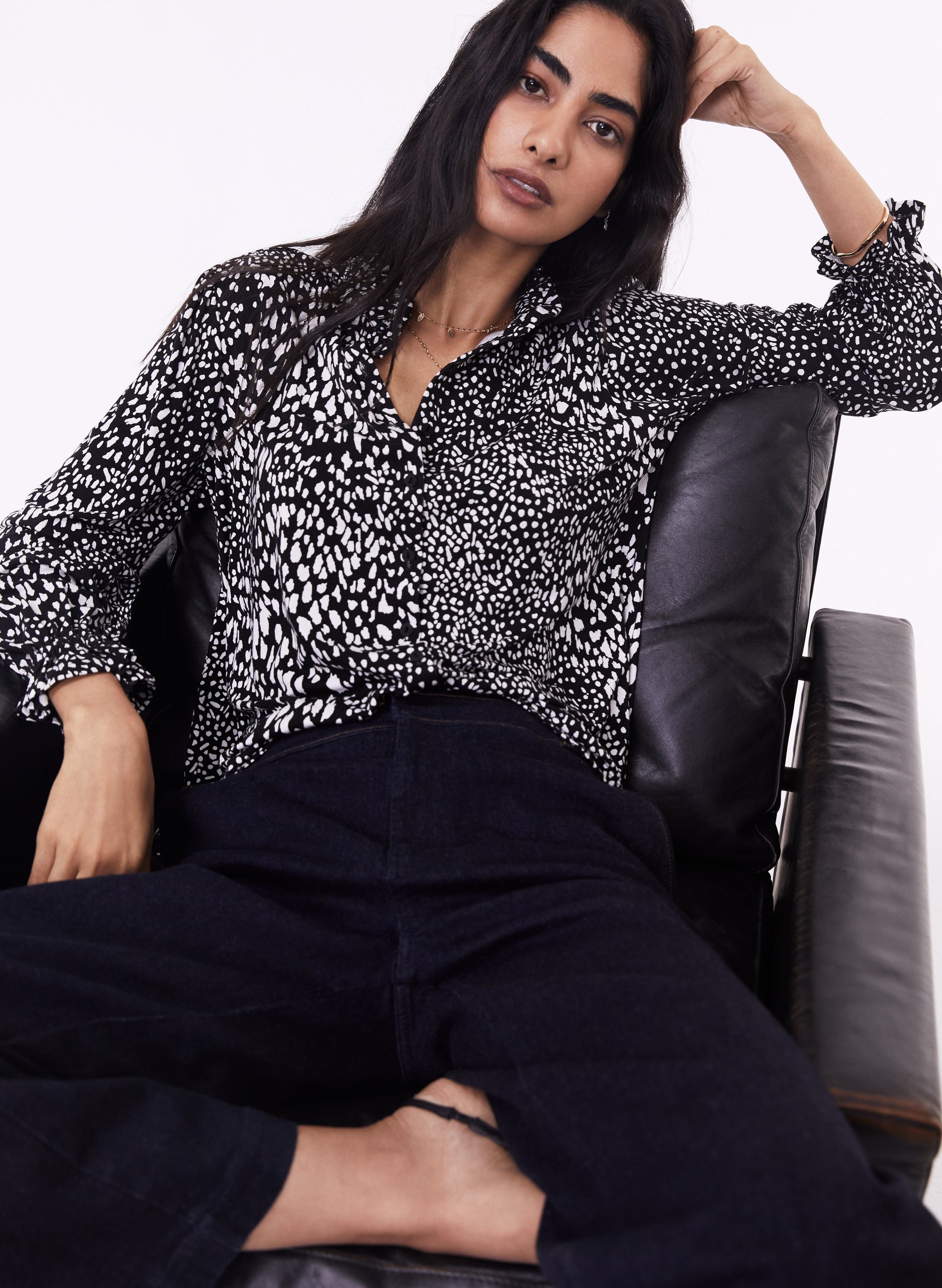 You can’t get enough of our feelgood, frilly blouses - so here’s a fresh style to pep up your jeans and tailored trousers. Just like our popular Sima Blouse, Shirley features a relaxed collar with a pretty ruffled neckline and cuffs. The point of difference is the textured spot print, which will lend a dash of pattern to your favourite separates.