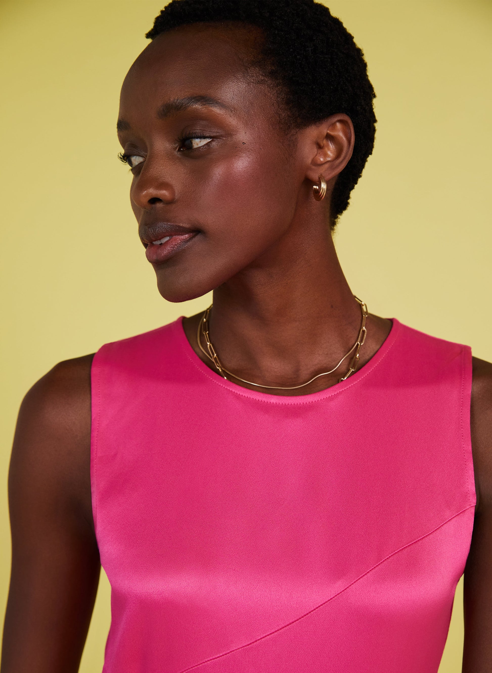 Prepare to turn heads in Soleil! This feelgood frock comes in the most dazzling shade of pink, and a wonderfully resourceful fabric called Ecojilin, which makes use of recycled fibres. The result is a drapey dress with a luxe, satin finish and a sexy split for good measure. Just add heels and earrings and you’re ready to wow!