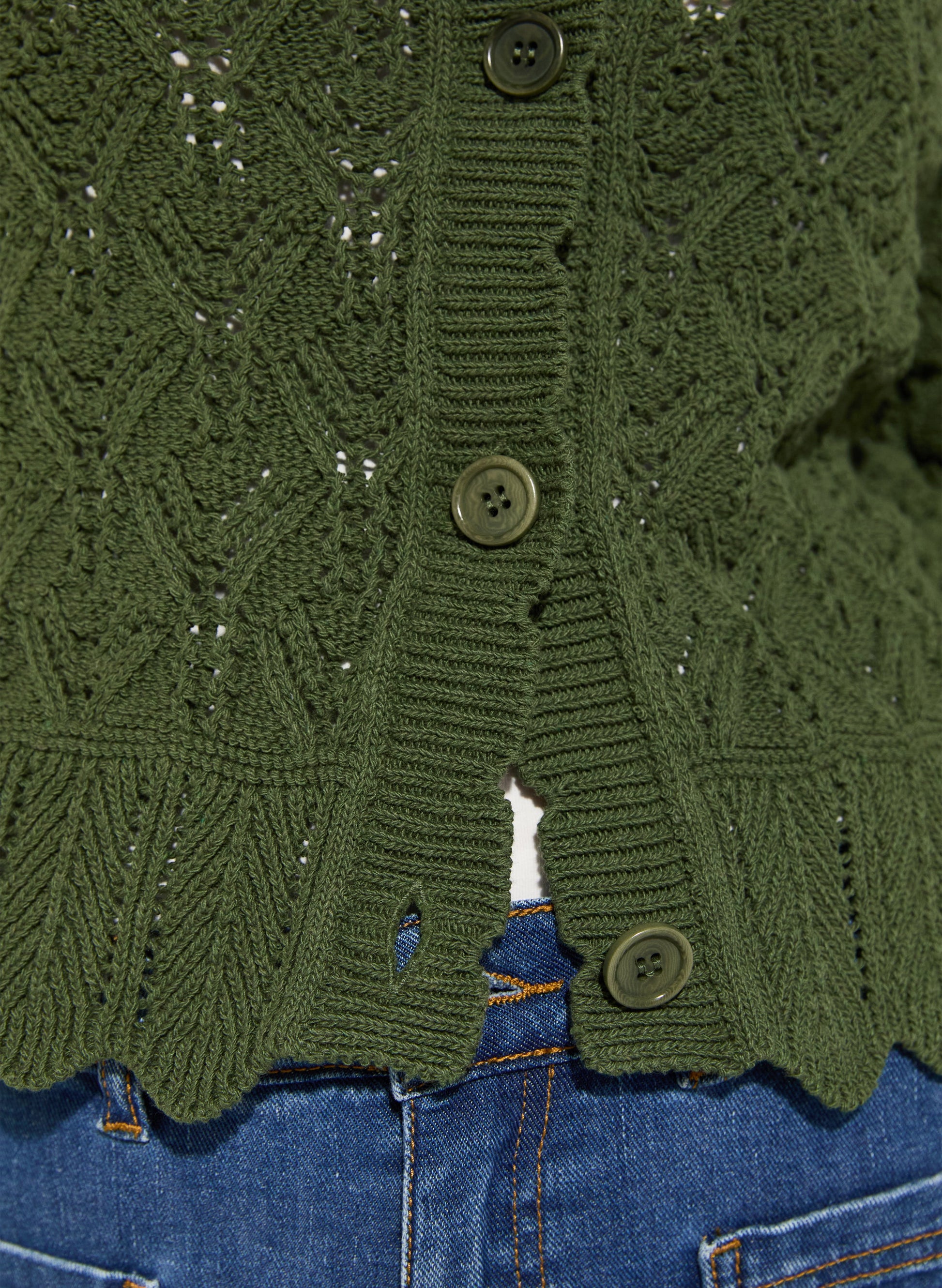 Reap the benefits of a pretty cardigan designed for milder weather with Ursula. This hard-working style in ECOTEC® recycled cotton blend comes in a crochet knit, promising to elevate a pair of jeans or tailored trousers while providing a light layer. Cut for a neat fit in versatile khaki, you can choose to wear it buttoned-down as a top, or thrown over a vest top or dress.